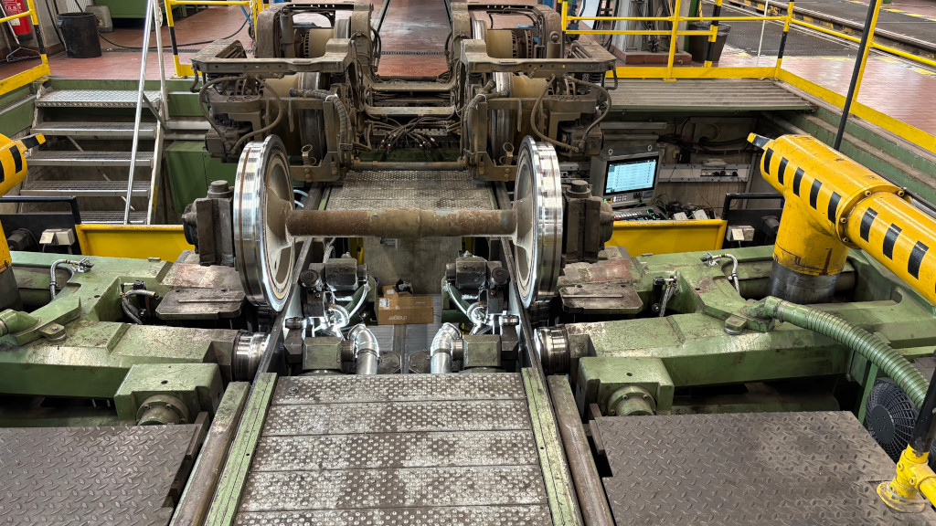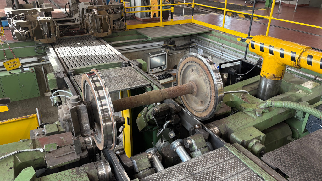 Control equipment for an underfloor lathe, manufactured by Hegenscheidt, for re-profiling tram wheels at Würzburg Tramways.